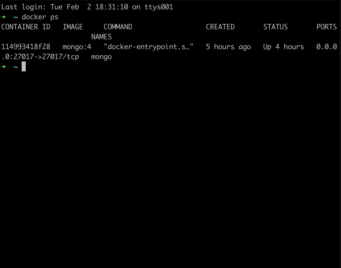 $ docker logs mongo | tail # Make sure mongo is running properly